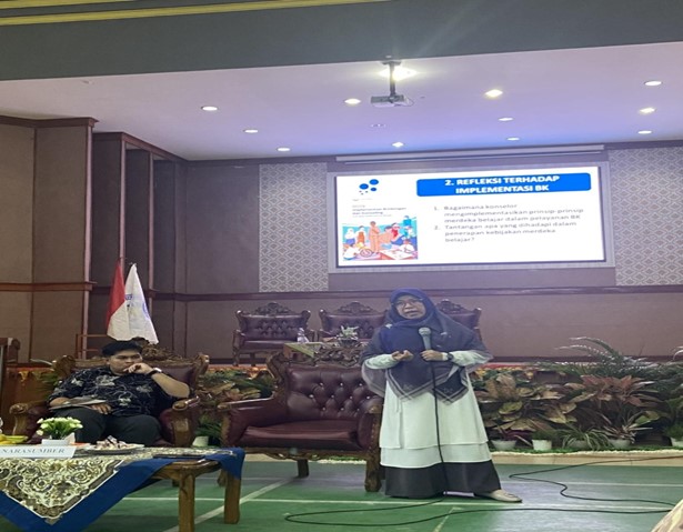 Dr. Darimis S.Ag., M.Pd., memaparkan materi tentang “Refleksi terhadap Bimbingan dan Konseling di Era Merdeka Belajar.” Presentasinya memberikan perspektif kritis terhadap praktik Bimbingan Konseling konvensional dan bagaimana adaptasinya terhadap perubahan paradigma pendidikan di era Merdeka Belajar.